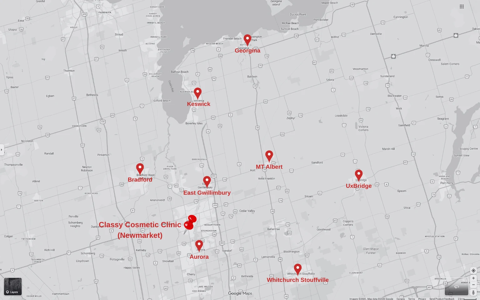 Clients from Aurora, Bradford, Mount Albert, Stouffville, Keswick, Georgina, and nearby areas can access trusted aesthetic care without the longer trip south.